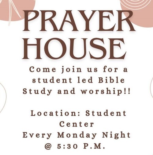 Prayer House is a student-led devotion time that provides community for believers to encourage one another to live out your faith while in college.